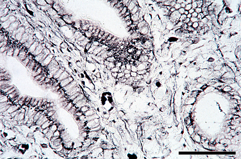 opaque deposits of silver. This is best seen in epithelial cells where the